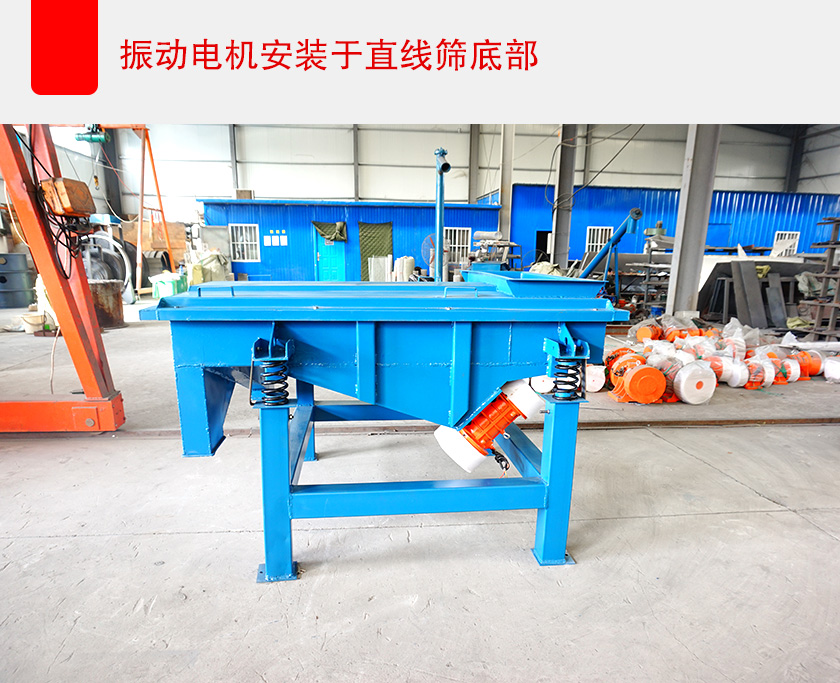 當(dāng)然,也可以通過減少直線篩的篩框等整體寬度來解決這個問題,但這樣會造成設(shè)備的有效篩分面積減少,導(dǎo)致處理量變小,影響篩分效率、生產(chǎn)進度,所以可以選擇將振動電機安裝在設(shè)備的底部,以此來減少直線篩的整體寬度,這樣即保證了設(shè)備的有效篩分面積,不影響處理量和篩分效率,也大大減小了直線篩設(shè)備的整體寬度。