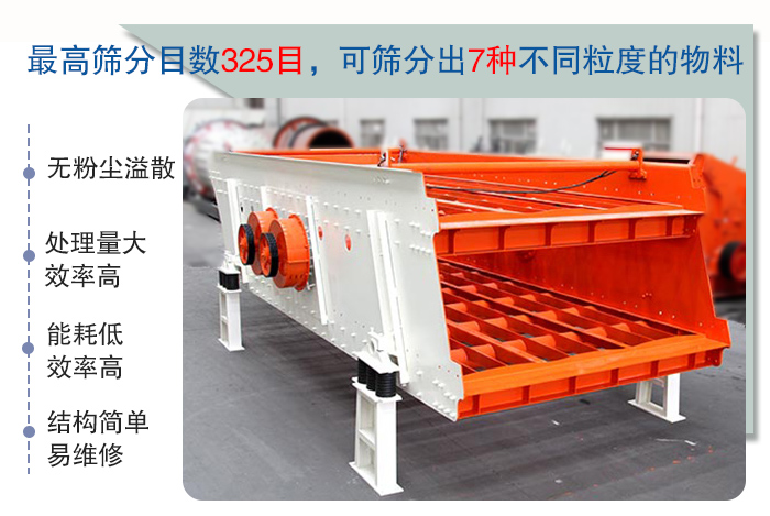 具有能耗低、效率高、結(jié)構(gòu)簡(jiǎn)單、易維修、全封閉結(jié)構(gòu)、無(wú)粉塵溢散等特點(diǎn)。最高篩分目數(shù)325目,可篩分出7種不同粒度的物料。