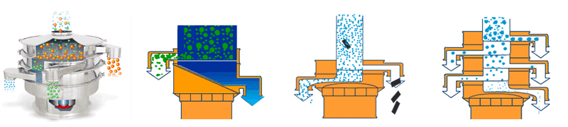 | 應(yīng)用 | 要用于物料原料的篩分和成品的最終生產(chǎn)檢驗(yàn),可以去除產(chǎn)品中的結(jié)塊和污染物,一次操作最多可提供5級(jí)分級(jí)。 | 適合高粘性、高靜電細(xì)粉,篩分精度可以提高80%以上,產(chǎn)量提高2-5倍。 | 模擬人工篩分的動(dòng)作,產(chǎn)生了水平和投擲的三維滾動(dòng)運(yùn)動(dòng),適用于500目以內(nèi)的細(xì)粒狀物料,篩分精度提高了90-95%,產(chǎn)量是圓形振動(dòng)篩的5-10倍。 | 適合一般的粗略篩分或除雜,的進(jìn)、出料口設(shè)計(jì)在同一垂直方向上,這樣會(huì)加快物料的排料速度,處理量是普通圓形振動(dòng)篩的2-5倍。 | 經(jīng)常用在液體過濾行業(yè),可去除液體或懸浮物中存在的不需要的顆粒,當(dāng)然也是可以作為粉末除雜??捎迷谔幚砹枯^小的工廠或小型作坊。 |